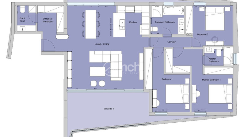 Scheduled for completion in 2025, this apartment combines modern design with practical features for contemporary living. For more information or to arrange a viewing, please contact NCH Real Estate.
