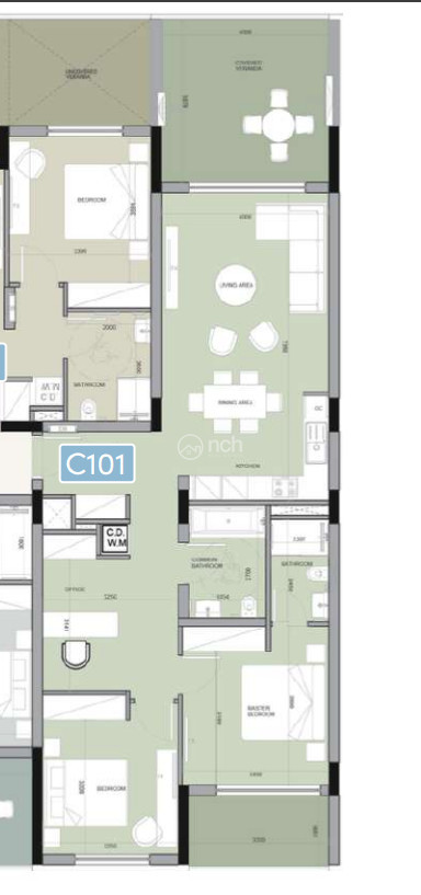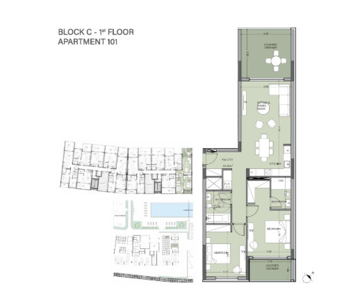 The two bedroom apartment has an internal covered area of 95 m2 and a covered veranda of 23 m2.