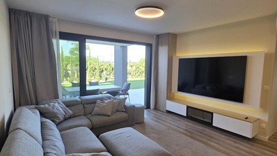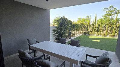 This stylish ground-floor 2-bedroom residence boasts a rare 385 m² private garden, professionally designed with mood lighting and full irrigation — your personal green oasis, perfect for BBQs, sunset dinners, and weekend gatherings.