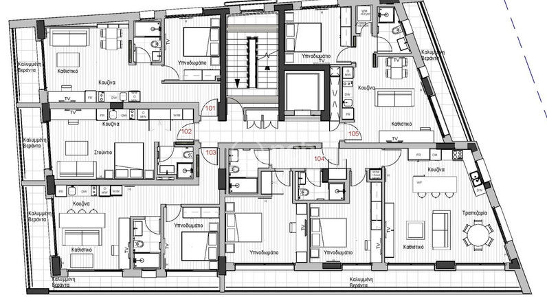 For sale: A modern two-bedroom apartment currently under construction in the sought-after Katholiki area. This residence offers 101 m² of well-designed internal space and 23 m² of covered veranda, with two inviting bedrooms and two elegant bathrooms. Located on the first floor of a four-story building, the apartment combines comfort with a sense of privacy and security.
