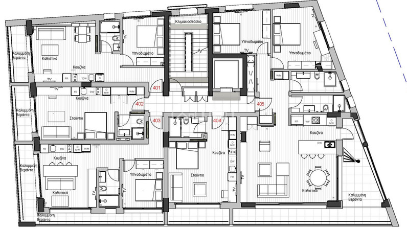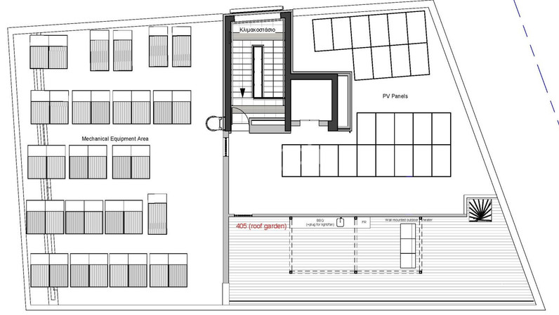 For sale: A modern penthouse currently under construction in the sought-after Katholiki area. This residence offers 110 m² of well-designed internal space, 33 m² of covered veranda and 83 m² of roof garden, with two inviting bedrooms and two elegant bathrooms. Located on the fourth floor of a four-story building, the apartment combines comfort with a sense of privacy and security.