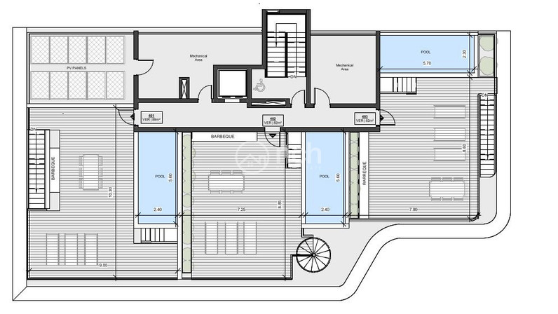 The penthouse is thoughtfully designed with two spacious bedrooms and two contemporary bathrooms, emphasizing comfort, functionality, and modern aesthetics. A central air-conditioning system ensures year-round comfort throughout the home.